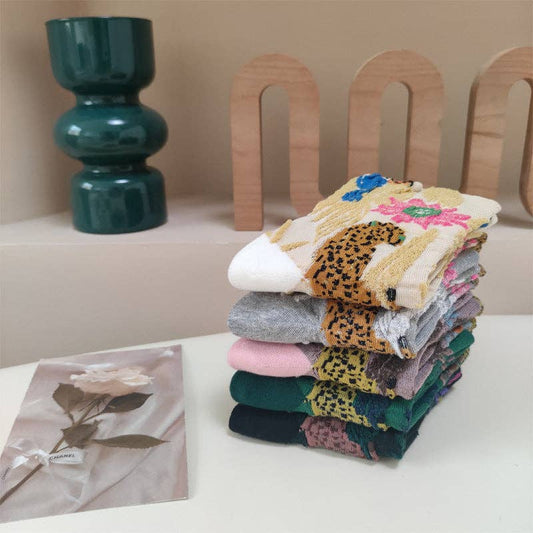 Vintage Embossed Floral Crew Socks