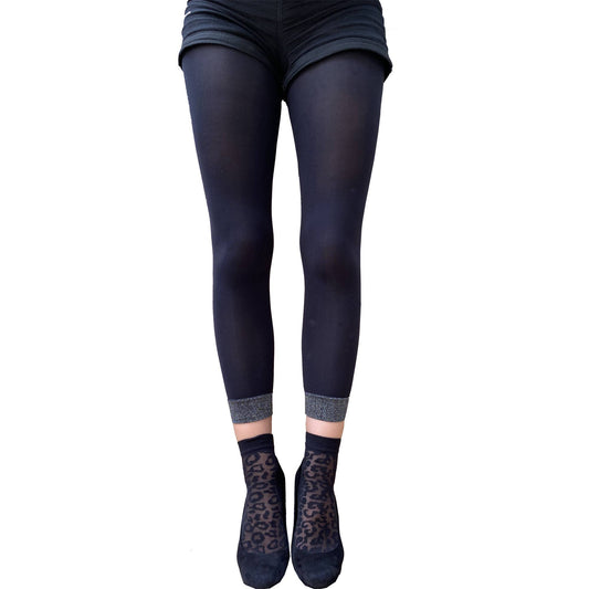Black Ankle Socks Sheer Leopard for Women