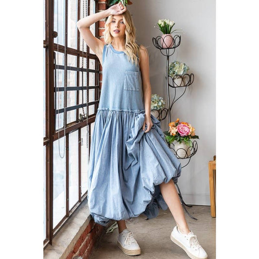 WASHED SLEEVELESS BUBBLE HEM MAXI TANK DRESS