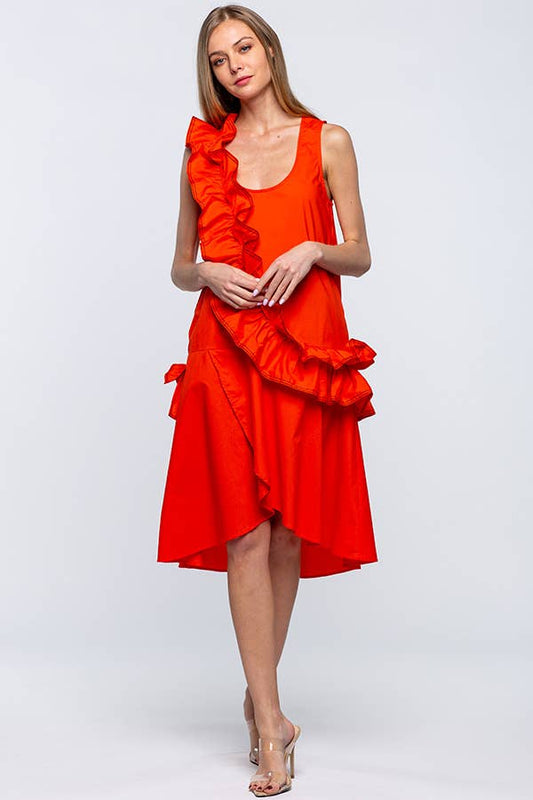 A-LINE COTTON DRESS WITH RUFFLES