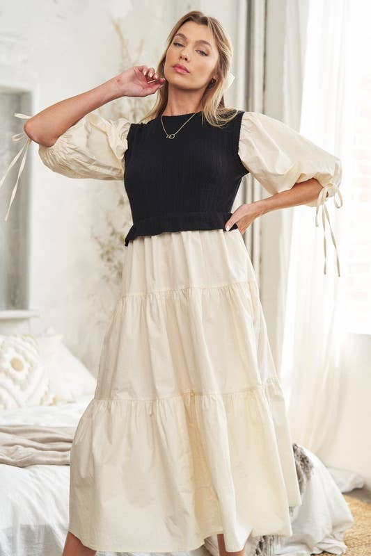 Mixed media tiered midi dress